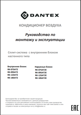 Документы и инструкция к кондиционеру DANTEX ADVANCE 2 RK-18SAT2/RK-18SAT2E