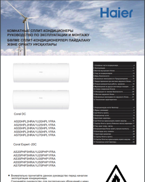 Документы и инструкция к кондиционеру Haier Coral DC Inverter AS25HPL2HRA/1U25HPL1FRA
